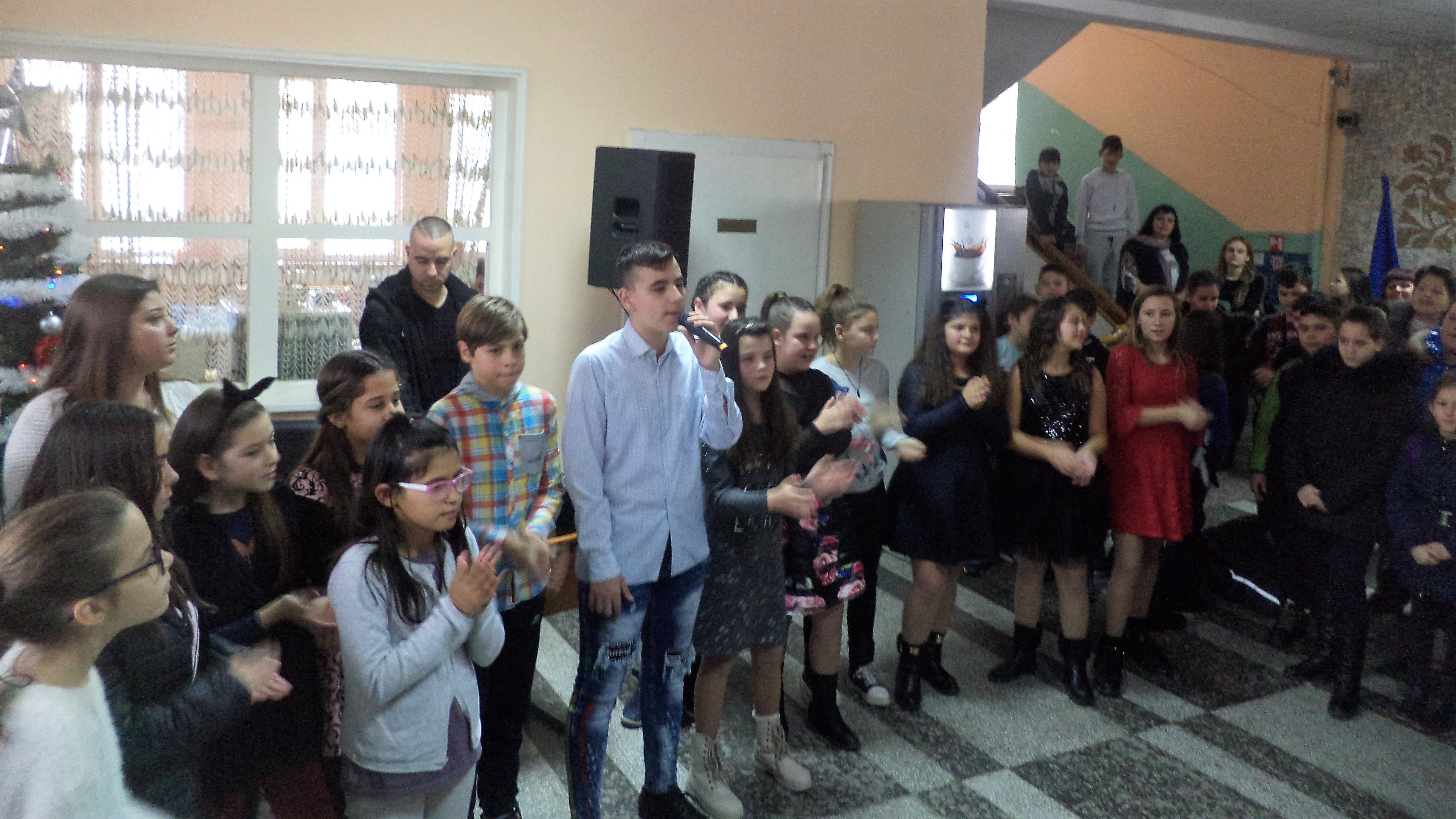 на Вокално студио, с ръководител г-жа Кина Йорданова, отбелязаха днес, 21 декември, началото на Светлите християнски празници учениците от Средно училище ”П. К. Яворов”.  Импровизираната сцена беше във фоайето на гимназията, където имаше оформен коледен кът с елхата и базар от коледни украшения на талантливите „Сръчковци” на г-жа Мими Георгиева.