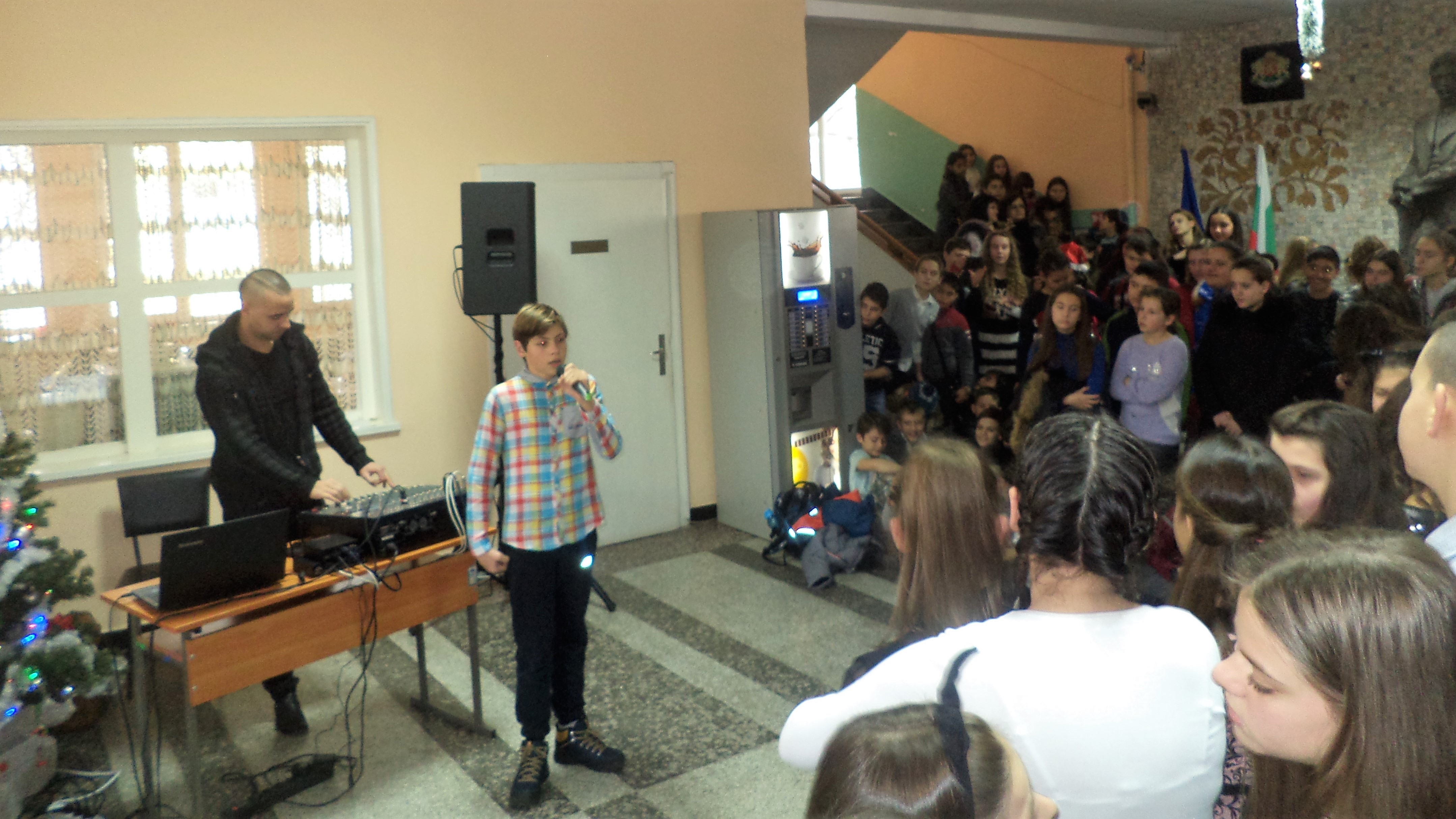 на Вокално студио, с ръководител г-жа Кина Йорданова, отбелязаха днес, 21 декември, началото на Светлите християнски празници учениците от Средно училище ”П. К. Яворов”.  Импровизираната сцена беше във фоайето на гимназията, където имаше оформен коледен кът с елхата и базар от коледни украшения на талантливите „Сръчковци” на г-жа Мими Георгиева.