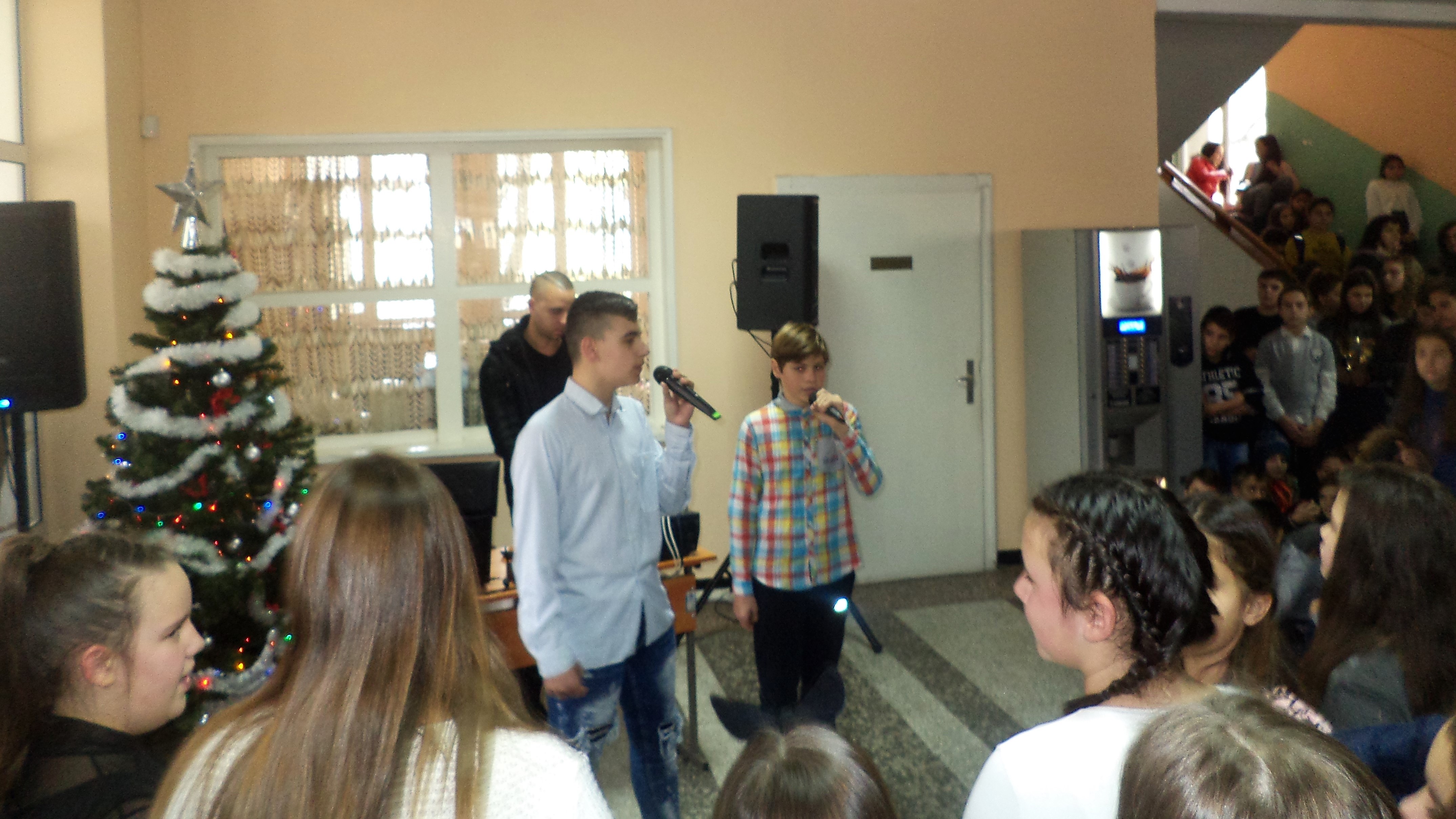 на Вокално студио, с ръководител г-жа Кина Йорданова, отбелязаха днес, 21 декември, началото на Светлите християнски празници учениците от Средно училище ”П. К. Яворов”. Импровизираната сцена беше във фоайето на гимназията, където имаше оформен коледен кът с елхата и базар от коледни украшения на талантливите „Сръчковци” на г-жа Мими Георгиева.