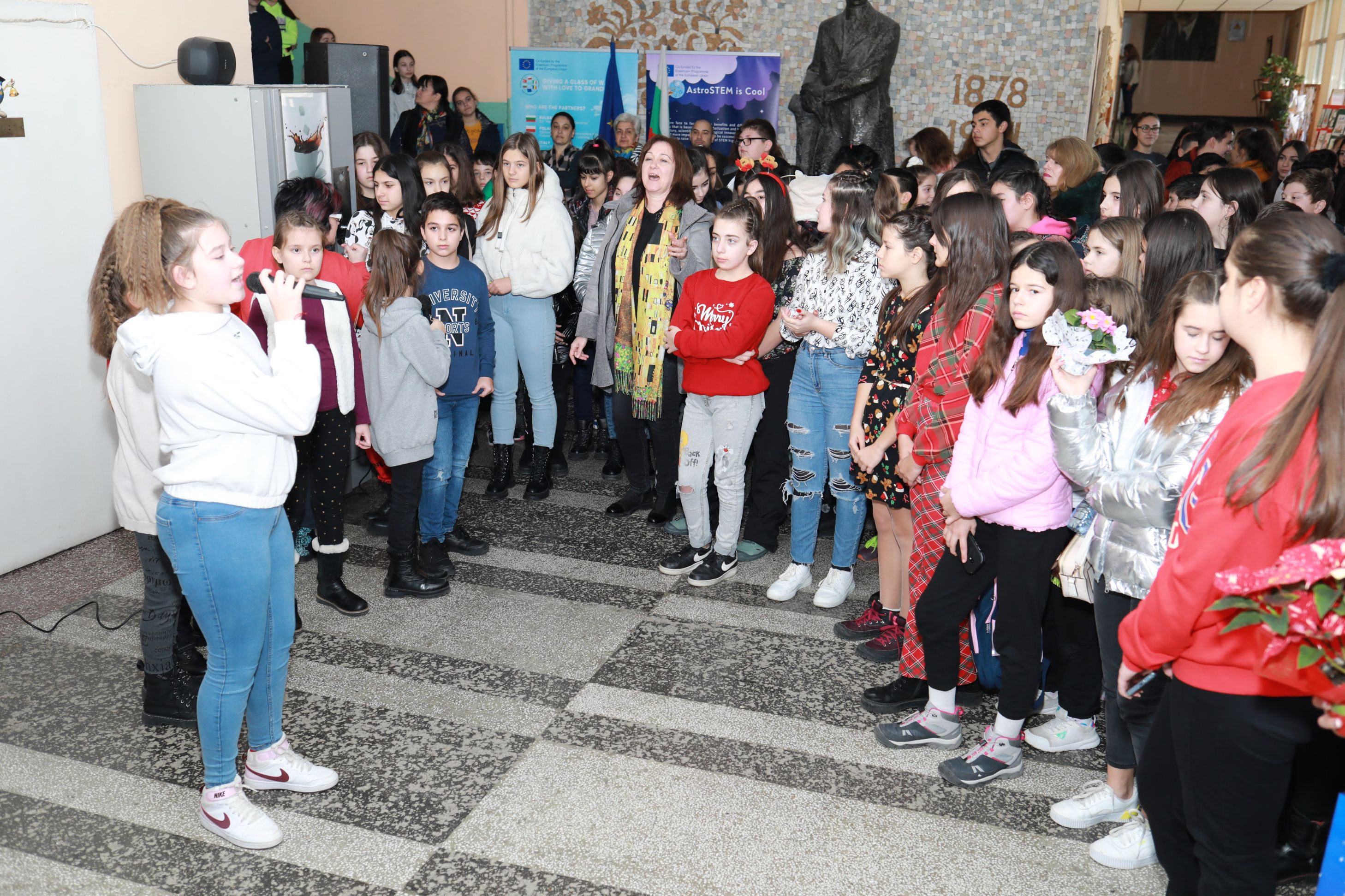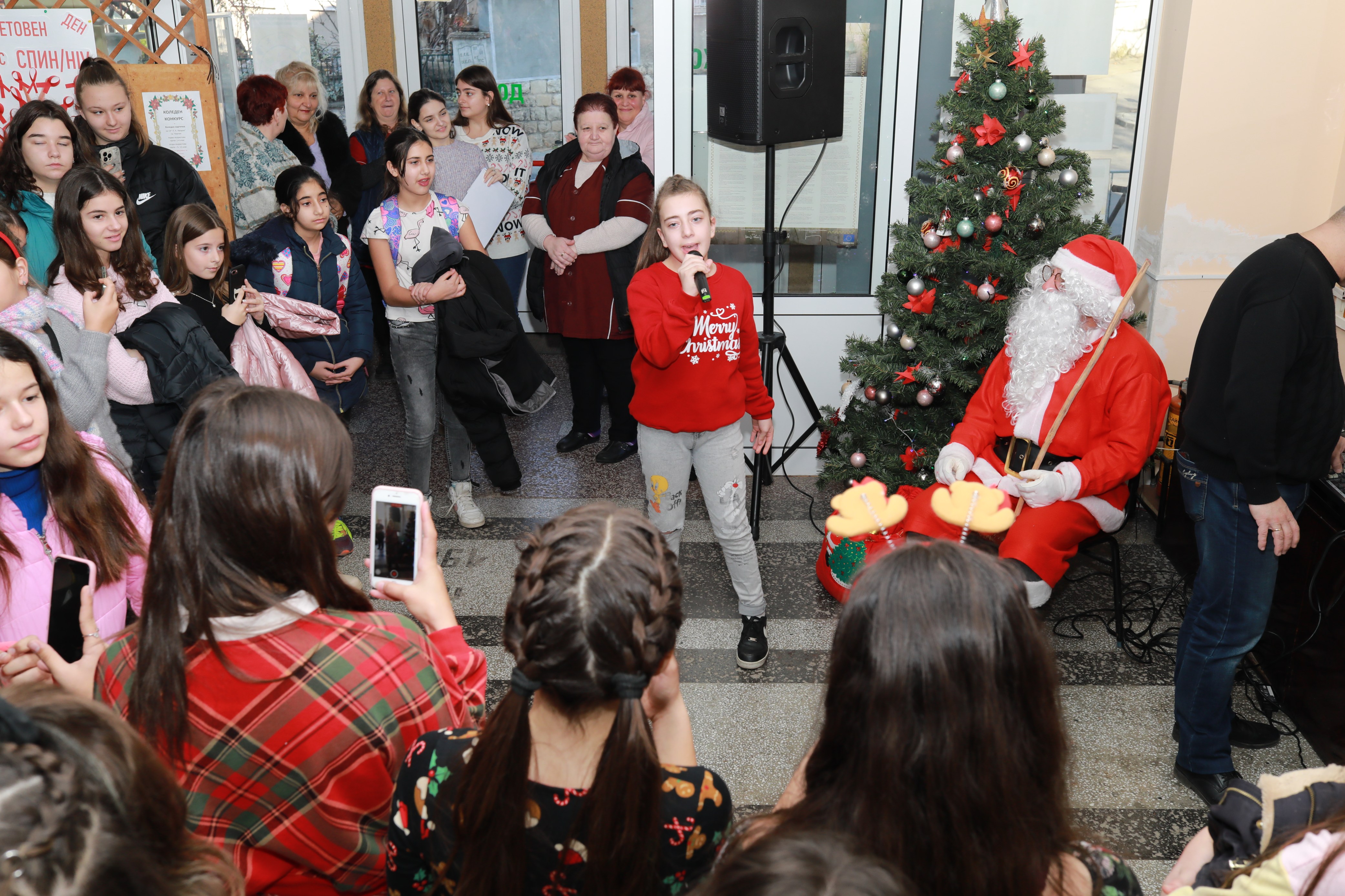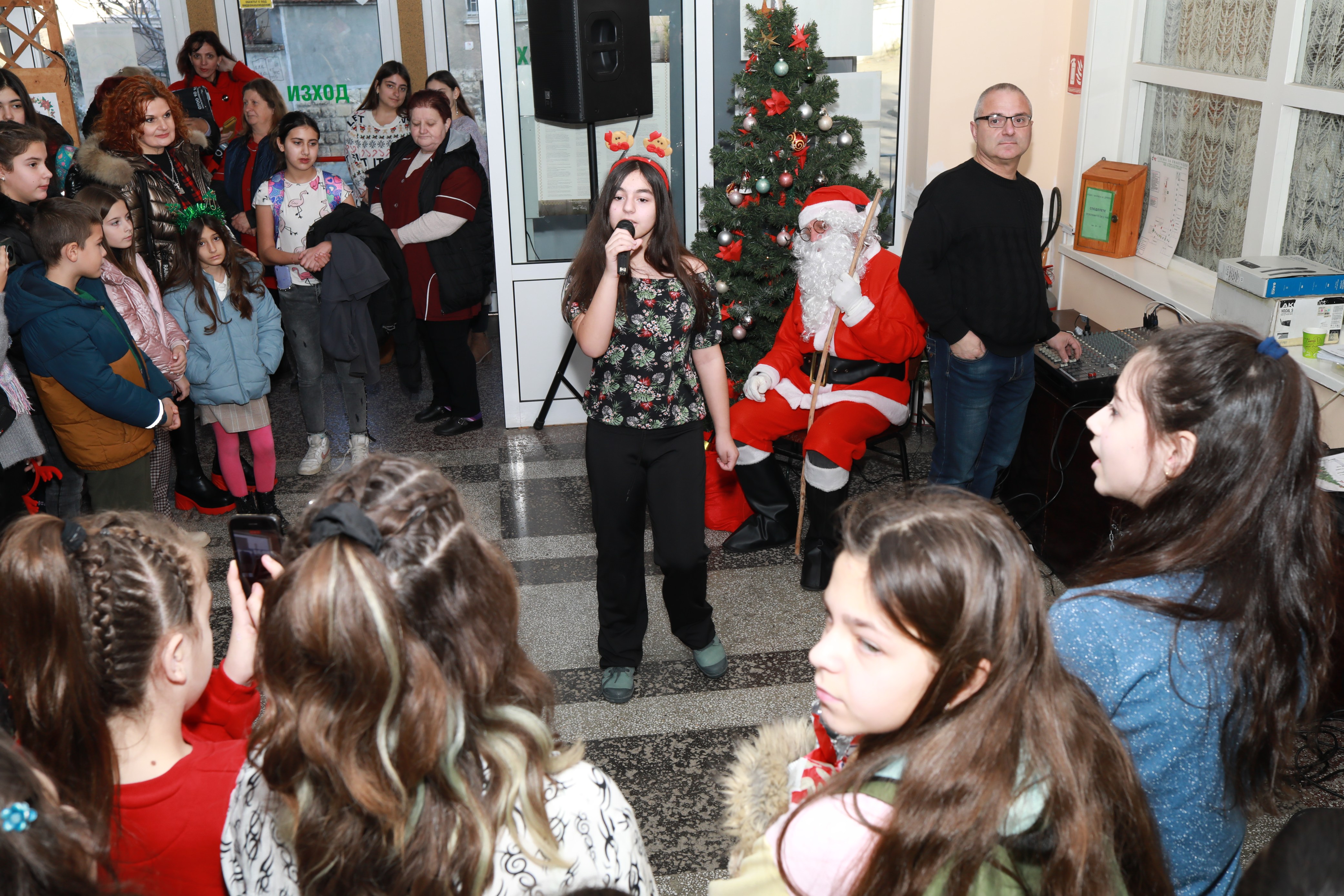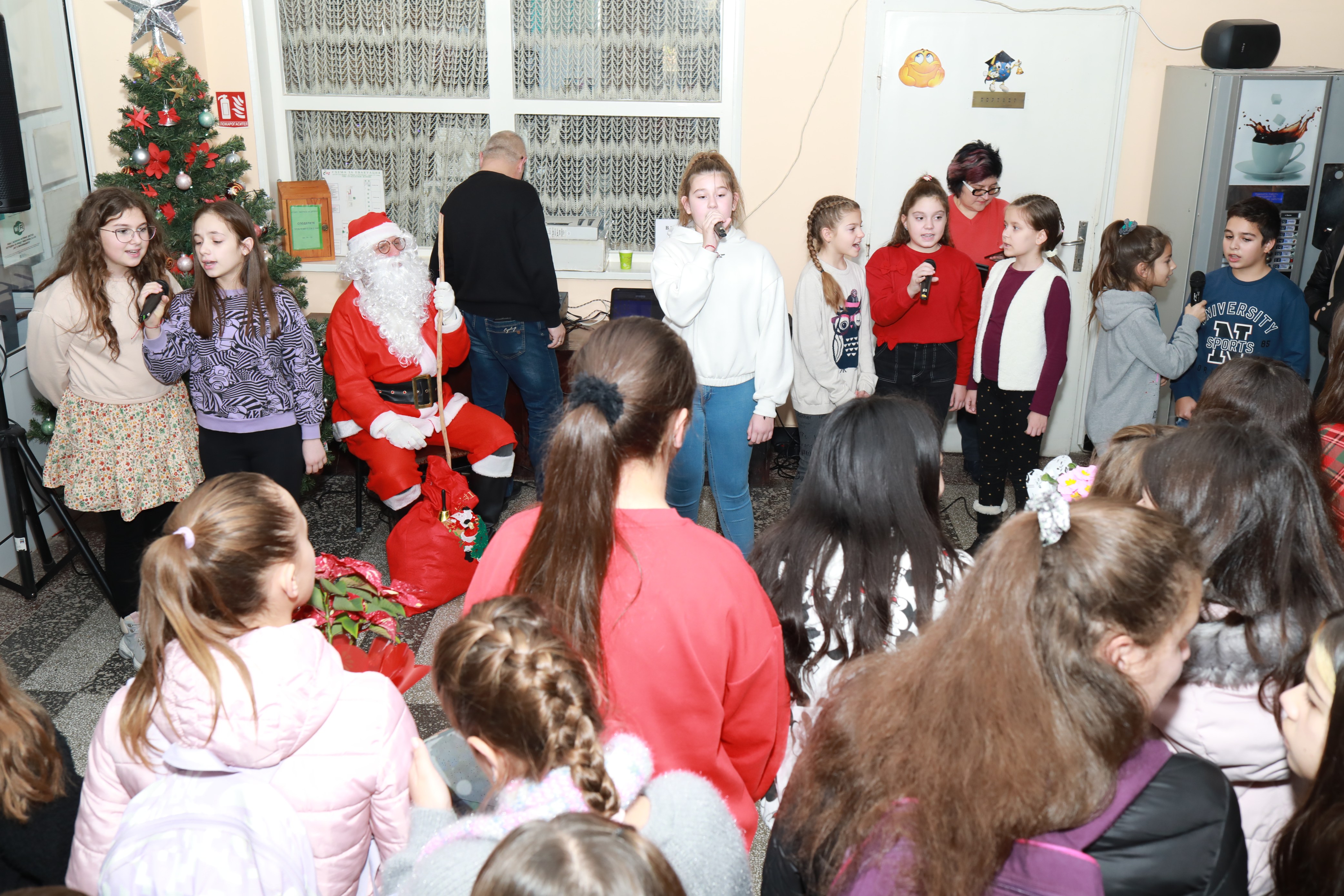За доброто настроение на всички учители и ученици много талантливи малки певци пяха коледни песни и това бяха: Ивелина Манева от 6. б клас, Памела Реджеб от 5. в, Анелия Желева от 7. б клас, Гергана Панева от 5. а клас, Анна Петрова от 7. б клас, Ралица Колева от 5. в клас, Рая Попова от 5. в клас, Мария Маркова от 5. в клас, както и вокална група „Бим бам“ на г-жа Мария Петрова.