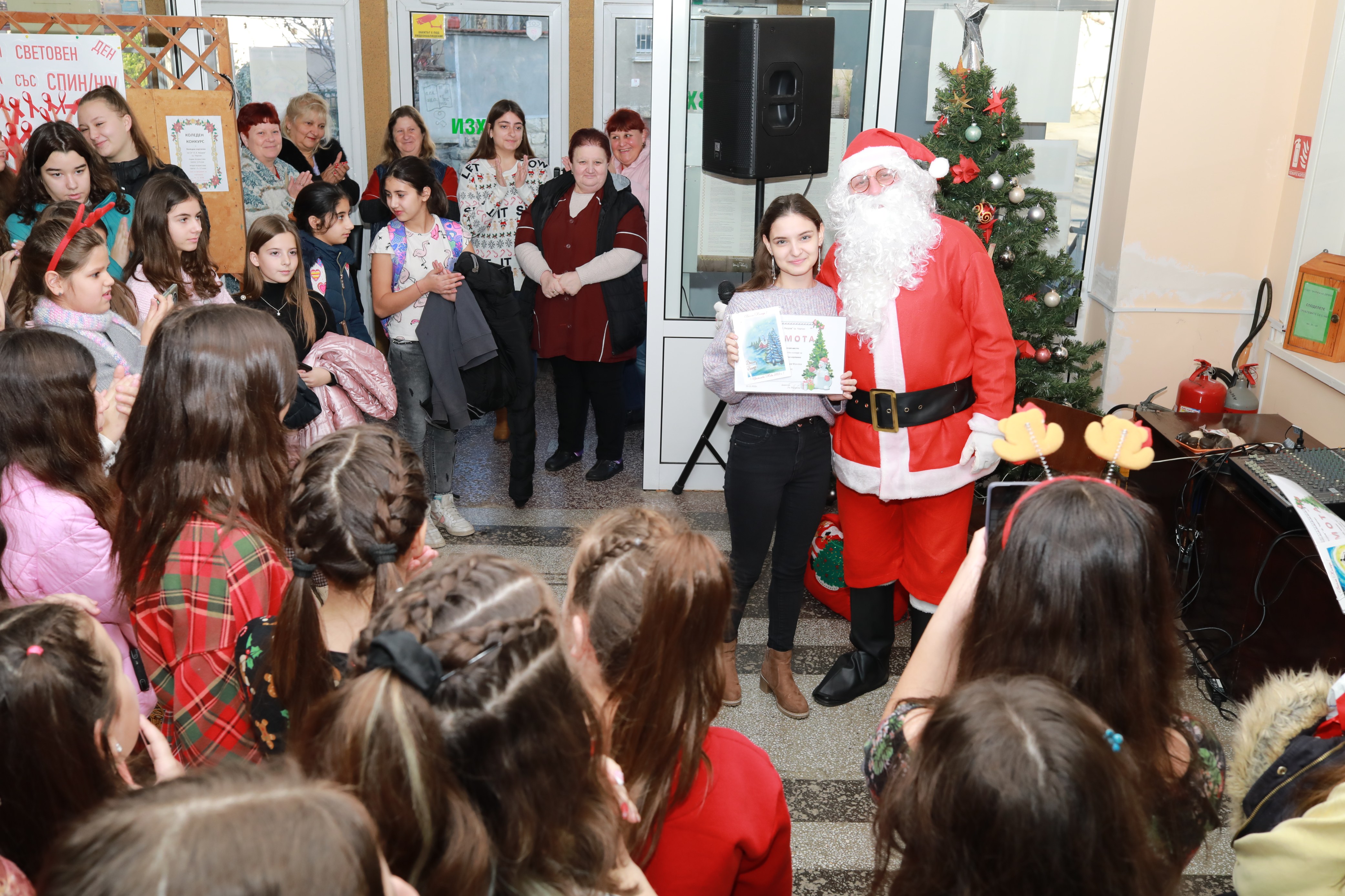 Гост на празника беше, разбира се, Дядо Коледа, който раздаде награди на много послушни и талантливи деца, които участваха в конкурса за коледна картичка.