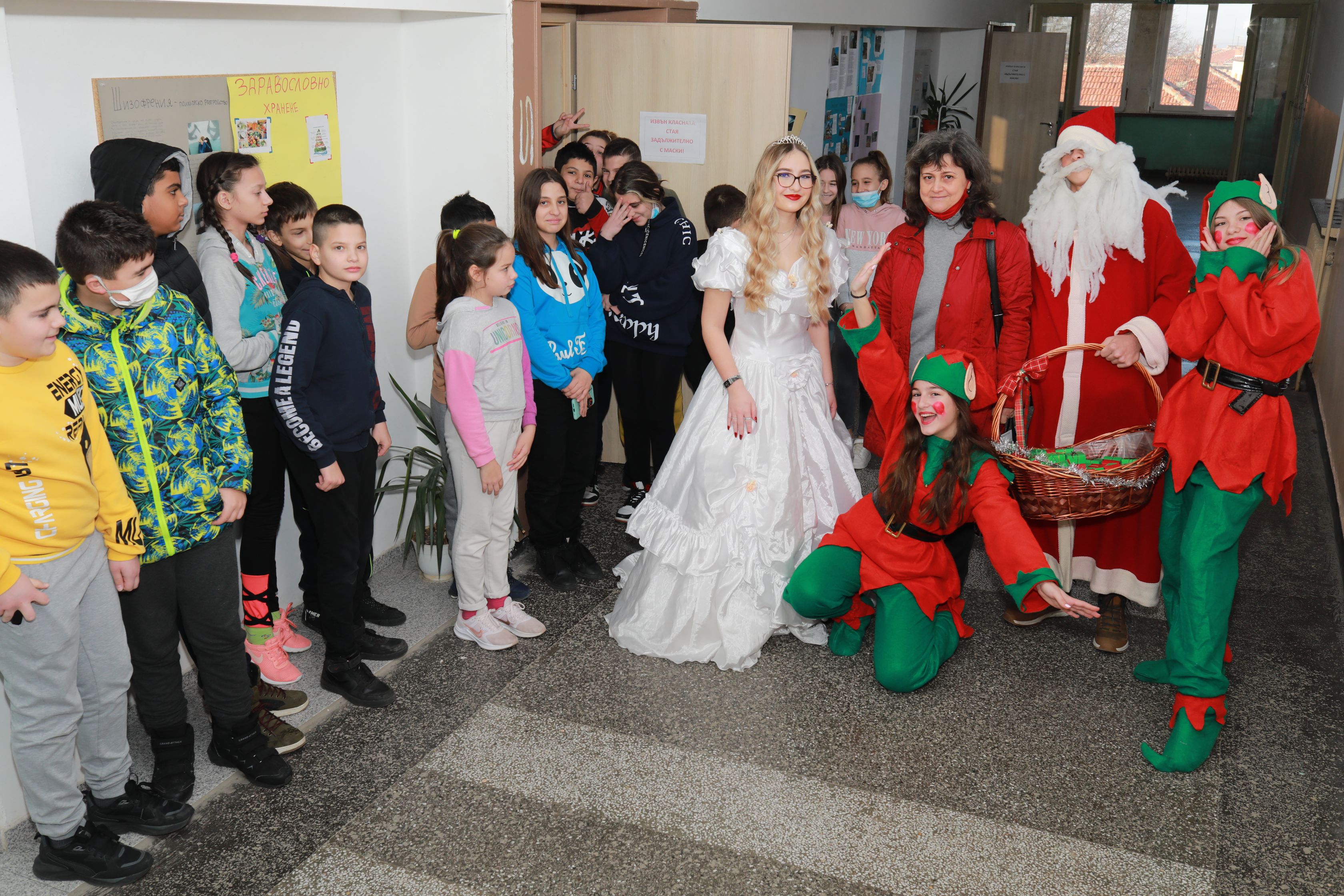 Заедно със самите джуджета, Дядо Коледа и Снежанка обиколиха класните стаи и си направиха снимки за спомен с учители и ученици. А след тях оставаше дирята на вълшебство, канела и вкусни коледни сладки.